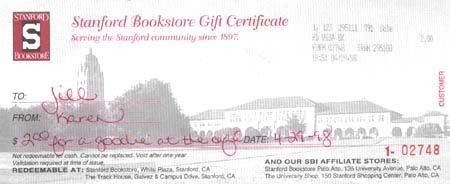 The redesigned Stanford Bookstore gift certificate