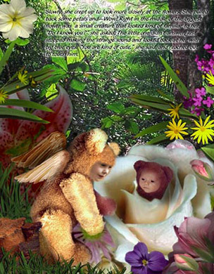 It was done in Photoshop from photos and scans of flowers, leaves, and toys.