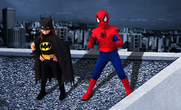 This is a photo my kids, in Halloween costumes I made from scratch. After placing them into this rooftop background, it makes a great desktop image.