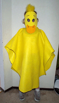 Right: Aubeni dressed up for her class spring sing-a-long. "I saw a duck by the waterside..." |