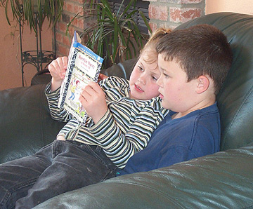 Below: Aubeni reads to Doran. Horrible Harry books have been a favorite of both kids. |