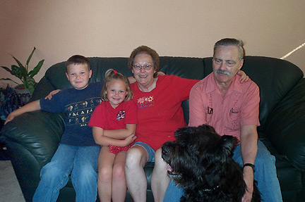 | Doran and Aubeni with their Oehring grandparents (and Fritz, who found a new friend for life in Grampa). | ||||||||||||||||||||||||||
