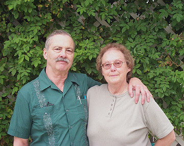 Right: Mama and Papa with my giant rose bush. |