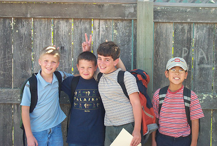 | Left: Doran and buddies after school. Below left, Aubeni and girlfriends at school on Halloween. Aubeni was Spiderman. Below: Doran's Halloween costume: another sort of spider-man. |