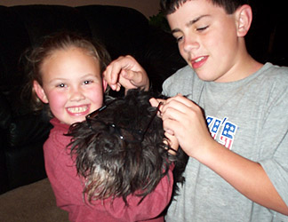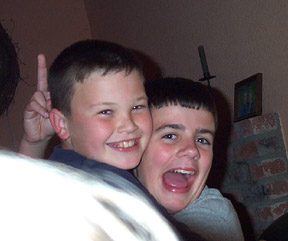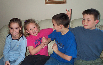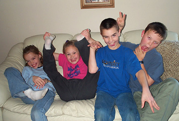 | I give up! Be silly. Justyne, Aubeni, Jeremy and Doran, December 2002. | ||||||||||||||||||||||||||