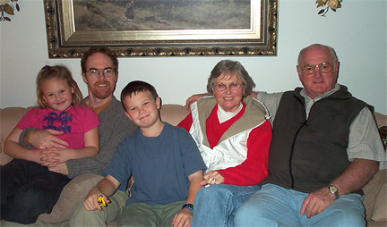 | We visited Oakdale a few days before Christmas. Aubeni, Tony and Doran with Linda and Dad (alias Grampa Looper). | ||||||||||||||||||||||||||